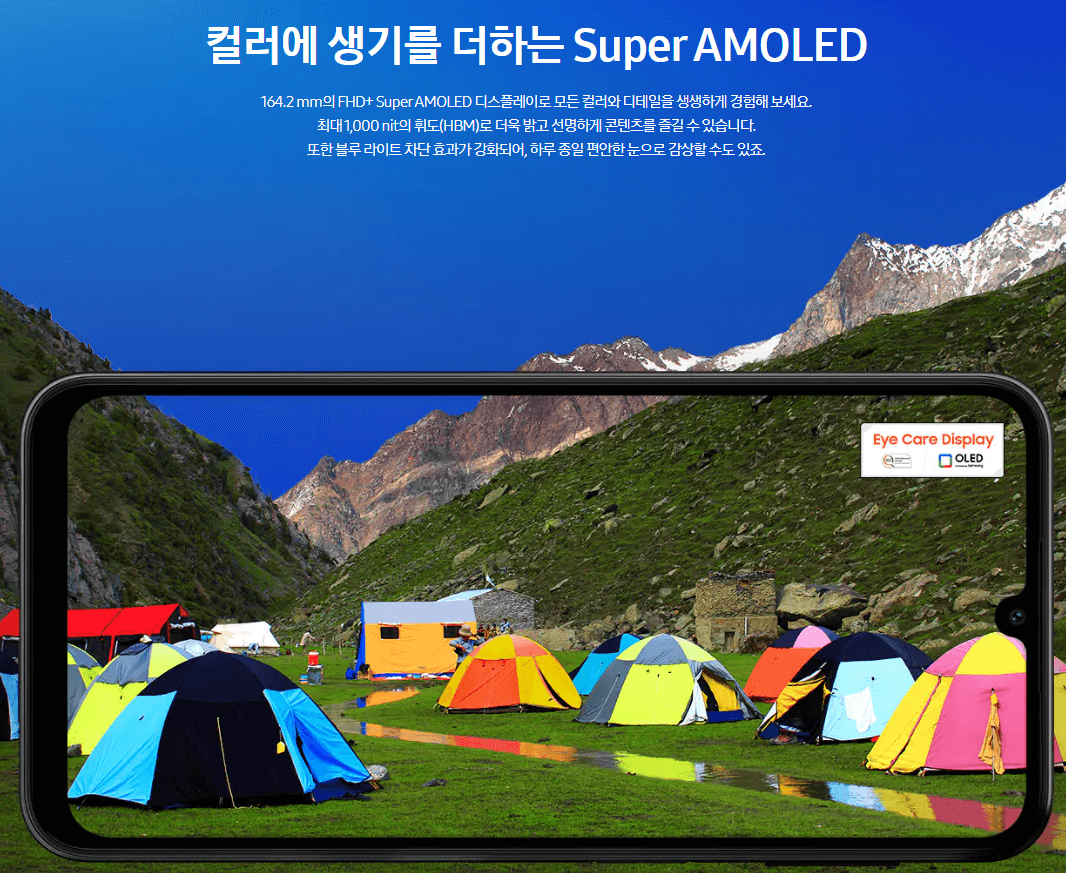 화면 사이즈는 6.5인치로, S23보다 크고 S23+ 보다는 작은 사이즈이며, 풀 HD 해상도에 슈퍼 아몰레드가 적용되어 있어 선명하고 넓은 화면을 즐길 수 있습니다. 저장 공간의 경우에는 MicroSD 카드로 최대 1TB까지 추가할 수 있습니다.