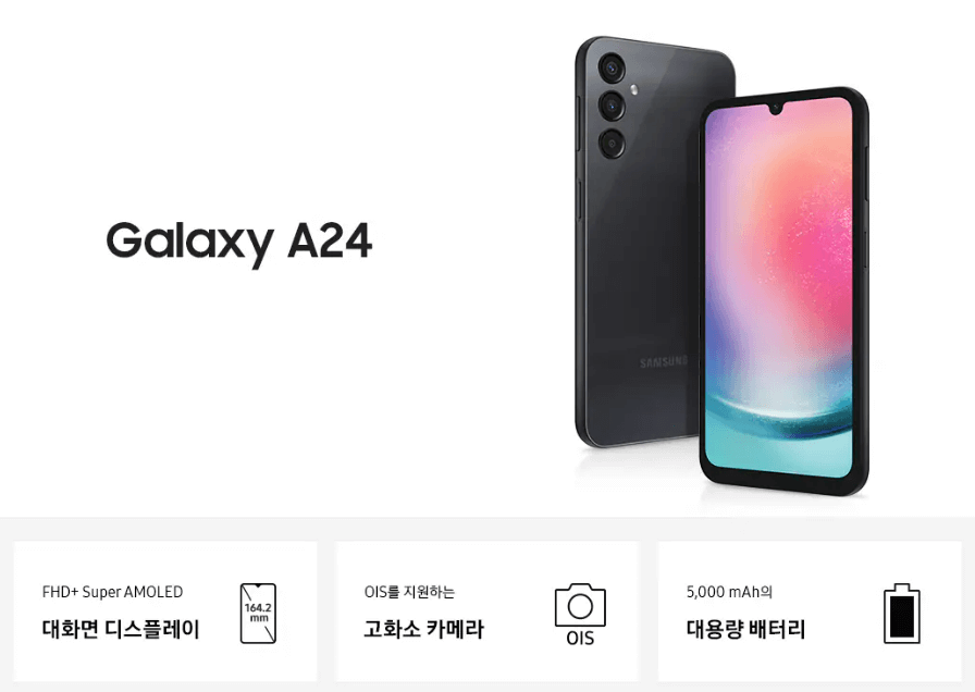 1. 삼성 갤럭시 A24 - 128g (쿠팡 356,400원 / 삼성 348,400원)